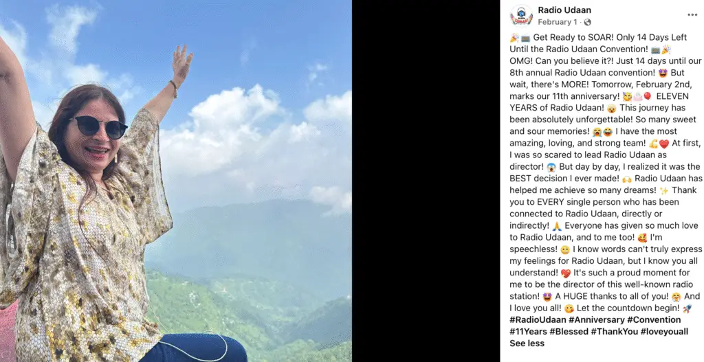 Top photo – Pictured: Minal Singhvi, Source: Radio Udaan